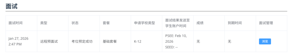 或者您也可以点击您主页中您的面试信息中的“浏览”按钮,